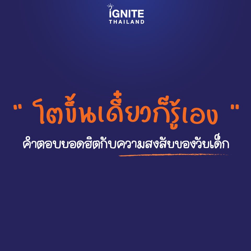 เพราะการถามก็คือการเรียนรู้อย่างหนึ่ง ต่อให้เด็กอาจจะยังไม่เข้าใจ แต่เชื่อเถอะว่า คำตอบของผู้ใหญ่ในวันนั้นจะเป็นคำพูดที่เด็กอย่างเราจำได้ และจะนำมาคิดต่อได้เอง สิ่งเหล่านั้นมันทำให้เด็กจดจำและเรียนรู้ได้ดีกว่าคำว่า